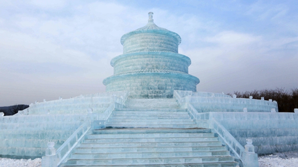 2018年2月8日,遼寧省沈陽國際冰雪節上展現的精美冰雕雪雕。本次棋盤山冰雪大世界冰雪雕園兩個展區,分別是盛京壇城冰雕展園和關東影視城內的2018中國沈陽盛京燈會冰雕園。