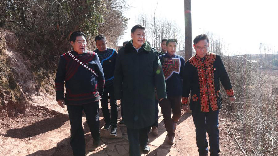 2月11日,中共中央總書記、國家主席、中央軍委主席習近平在四川考察。這是習近平在涼山彝族自治州昭覺縣三岔河鄉三河村了解當地貧困現狀,聽取精準扶貧、精準脫貧措施落實情況介紹。