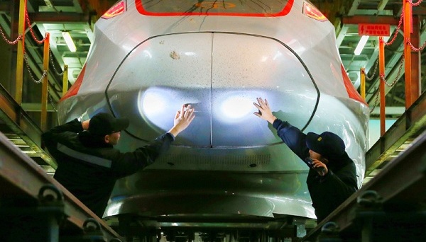 2018年春運期間,北京動車段每日檢修量130余組,日檢修量增加百分之三十。數千余名工人輪班連夜工作,凝心聚力打造“平安 溫馨 有序”春運,為了萬千旅客的春節歸途默默奉獻。