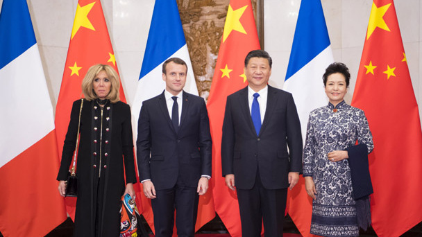 1月8日,國家主席習(xí)近平在北京釣魚臺國賓館會見來華進(jìn)行國事訪問的法國總統(tǒng)馬克龍。這是習(xí)近平和夫人彭麗媛同馬克龍夫婦合影。