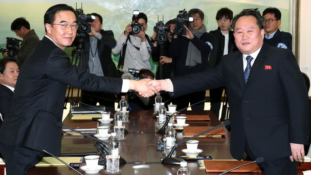 當(dāng)?shù)貢r間9日10時,韓國和朝鮮代表在板門店韓方一側(cè)“和平之家”開始舉行高級別會談,討論朝方派代表團(tuán)參加平昌冬奧會、南北關(guān)系改善等議題。
