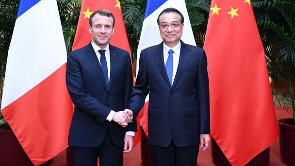 1月9日,國務(wù)院總理李克強在北京人民大會堂會見來華進(jìn)行國事訪問的法國總統(tǒng)馬克龍。