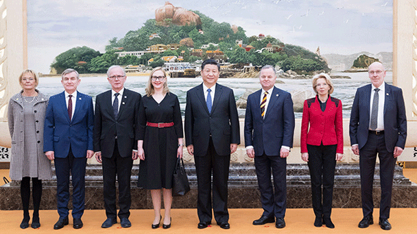 1月10日,國家主席習(xí)近平在北京人民大會堂集體會見北歐和波羅的海國家議會領(lǐng)導(dǎo)人。