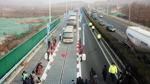 當日,我國首個承載式光伏高速公路試驗段在濟南建成通車,實現(xiàn)利用高速公路路面并網發(fā)電。光伏路面鋪設長度1080米、凈面積5875平方米,鋪設主行車道和應急車道;分布式光伏并網發(fā)電裝機容量峰值功率817.2千瓦,預計可實現(xiàn)年發(fā)電量約100萬千瓦時。