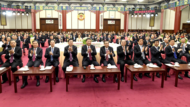 12月29日,全國政協(xié)在北京舉行新年茶話會。黨和國家領導人習近平、李克強、張德江、俞正聲、張高麗、栗戰(zhàn)書、汪洋、王滬寧、趙樂際、韓正出席茶話會并觀看演出。