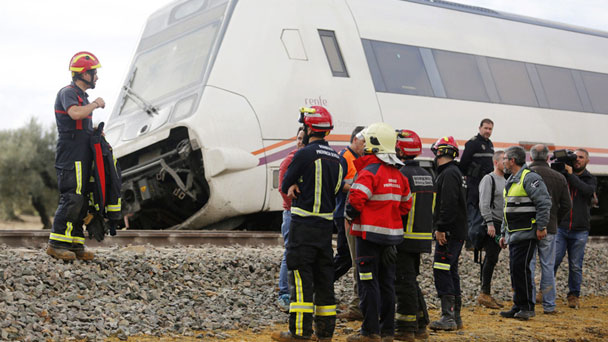 當地時間11月29日,在西班牙南部塞維利亞省的阿拉阿爾鎮,一輛從馬拉加開往塞維利亞的列車在當地脫軌,西班牙官方稱有27人受傷,事發后急救小組對列車和軌道等進行檢查。