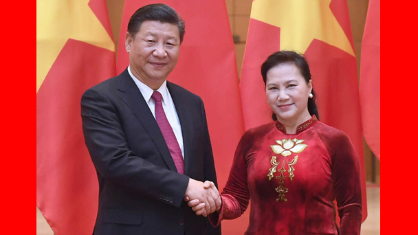 中共中央總書記、國家主席習近平12日在河內(nèi)會見越南國會主席阮氏金銀。