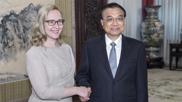 11月6日,國務(wù)院總理李克強(qiáng)在北京中南海紫光閣會見芬蘭議會議長洛赫拉。新華社記者李濤攝 11月6日,國務(wù)院總理李克強(qiáng)在北京中南海紫光閣會見芬蘭議會議長洛赫拉。新華社記者李濤攝