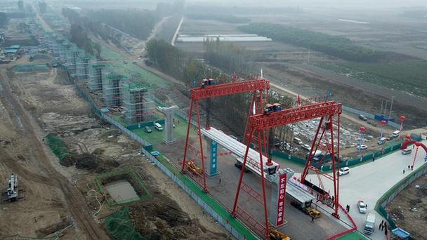6日,北京軌道交通新機(jī)場線第一片梁,在位于大興區(qū)禮賢鎮(zhèn)由北京城建集團(tuán)承建的新機(jī)場線一期工程02標(biāo)工地開始架設(shè),這標(biāo)志著北京新機(jī)場線進(jìn)入高架區(qū)間上部結(jié)構(gòu)施工。