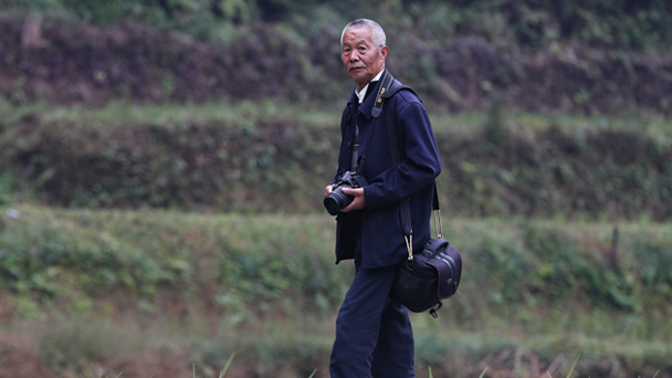 78歲的張希才老人是貴州省雷山縣西江鎮(zhèn)黃里村人,在當(dāng)?shù)乜墒敲恕D為11月7日,張希才老人胸前掛著相機(jī)走在采訪的路上。