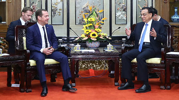 10月31日,國務(wù)院總理李克強(qiáng)在北京釣魚臺養(yǎng)源齋會見來華進(jìn)行正式訪問并出席中俄總理第二十二次定期會晤的俄羅斯總理梅德韋杰夫。新華社記者 謝環(huán)馳 攝