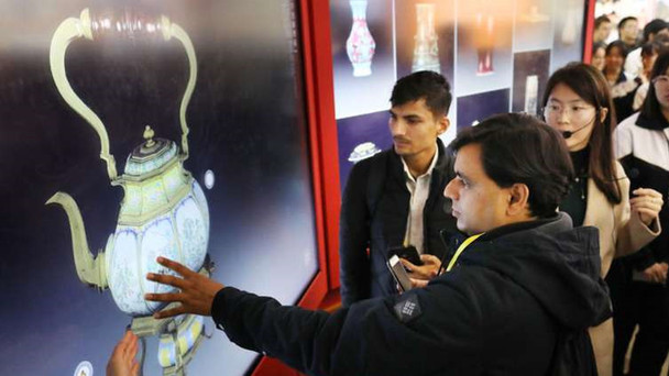 2017年10月20日,外交部組織50多名外國記者在北京展覽館參觀“砥礪奮進的五年”大型成就展。
