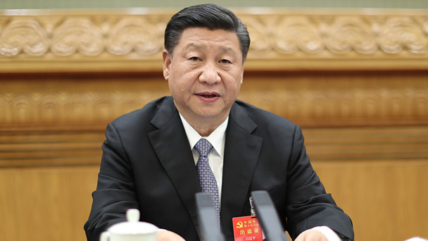 10月19日,習近平同志參加黨的十九大貴州省代表團討論。