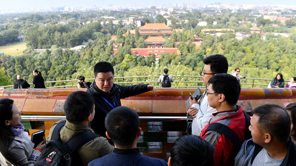當(dāng)日,十九大新聞中心組織首場(chǎng)外出參觀采訪活動(dòng),25家境內(nèi)外媒體35名記者,沿著北京中軸線參觀了永定門(mén)城樓、景山、鐘鼓樓、奧林匹克塔等經(jīng)典建筑,了解古都北京的歷史沿革,感受黨的十八大以來(lái)古都煥發(fā)出的生機(jī)活力。