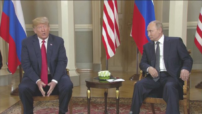 俄羅斯總統普京和美國總統特朗普在芬蘭首都赫爾辛基舉行會晤后,兩人舉行了聯合記者會。