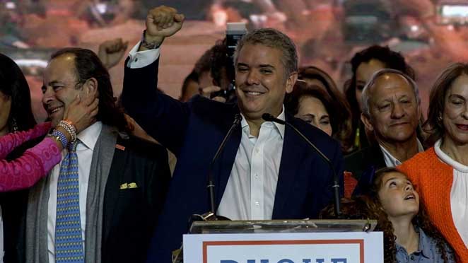 哥倫比亞總統選舉第二輪投票17日在平靜中結束。右翼候選人杜克戰勝左翼候選人彼得羅,當選哥倫比亞新一任總統。