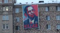 在這個高達30英尺(約合9米)的橫幅上,正中間是奧巴馬的頭像,下方配有紅色的Killer字樣。橫幅的大塊區(qū)域是血紅色的,觸目驚心。