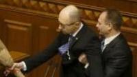 烏總理作報告時被“抱走” 議會兩大陣營互毆