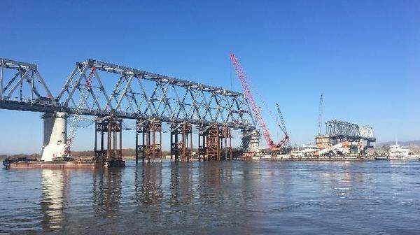 10月13日上午,中俄同江—下列寧斯闊耶鐵路橋重要組成部分——黑龍江特大橋中方最后一吊鋼梁安裝到位,標(biāo)志著同江中俄鐵路大橋中方段主體工程全部完成。