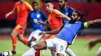 10月13日,國際足球友誼賽,中國隊坐鎮(zhèn)蘇州奧體中心迎戰(zhàn)印度隊。由于兩國人口加起來接近30億,這場比賽也被球迷戲稱為“地球德比”。比賽最終以0比0收場。