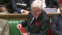 英國(guó)財(cái)政大臣奧斯本11月25日向英國(guó)議會(huì)提交新的政府開支計(jì)劃,反對(duì)黨工黨影子財(cái)政大臣麥克唐奈拿出一本《毛主席語(yǔ)錄》教訓(xùn)他,場(chǎng)面令人驚訝。