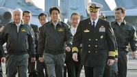 安倍晉三搭乘美軍“里根”號核航母 凸顯日美同盟