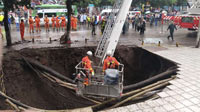 2018年10月7日,四川省達州市達川區東環南路103號人行道路面發生塌陷險情,形成一 直徑數米大坑,有人員掉落坑中。事發后,當地公安、消防、120醫護人員等救援人員迅 速趕到現場展開救援。