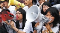 在安保相關法成立的19日,日本各地都舉行了抗議游行及集會。參加者年齡層分布廣泛,除高中生、大學生外,還有帶著上小學的孫子的老人。