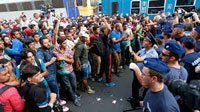 匈牙利警方9月1日封鎖了布達(dá)佩斯的一個主要火車站,以防非法移民前往歐盟其它國家,數(shù)百名難民在火車站外抗議。