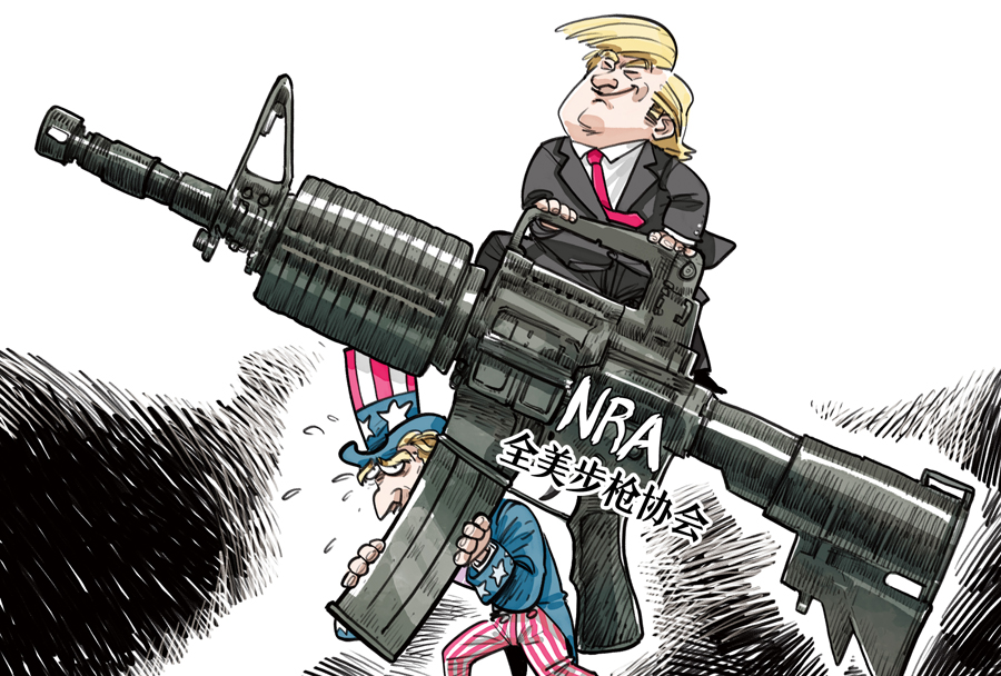 美國總統特朗普在全美步槍協會(NRA)年會上重申支持擁槍。