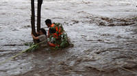 北京持續(xù)暴雨引發(fā)山洪 女子緊抱大樹被消防營救