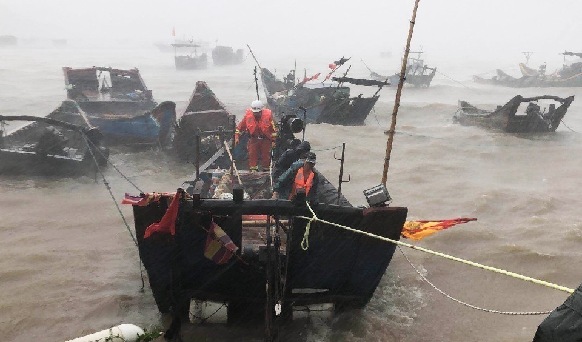 2018年7月11日 ,在福建省福州市連江縣筱埕鎮(zhèn)東坪村后灣碼頭內(nèi),消防官兵成功將兩名被困漁民轉(zhuǎn)移上岸。