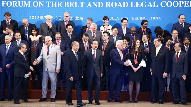 2018年7月2日,“一帶一路”法治合作國際論壇在北京釣魚臺國賓館舉行,中國國務委員兼外交部部長王毅出席論壇開幕式并作主旨演講。