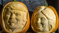 英國:萬圣節最新流行人臉南瓜 特朗普希拉里“上鏡”