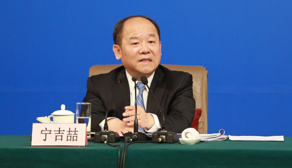 3月6日,十二屆全國人大五次會議舉行記者會,邀請國家發展和改革委員會主任何立峰、副主任張勇、副主任寧吉喆就“經濟社會發展與宏觀調控”的相關問題回答中外記者的提問。圖為寧吉喆在發布會上回答記者提問。