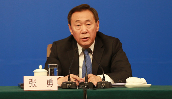 3月6日,十二屆全國人大五次會議舉行記者會,邀請國家發展和改革委員會主任何立峰、副主任張勇、副主任寧吉喆就“經濟社會發展與宏觀調控”的相關問題回答中外記者的提問。圖為張勇在發布會上回答記者提問。