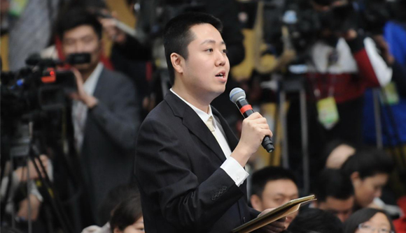 十二屆全國人大五次會議新聞中心于3月8日10時在梅地亞中心多功能廳舉行記者會,邀請外交部部長王毅就“中國的外交政策和對外關系”的相關問題回答中外記者的提問。圖為記者會主持人何紹仁