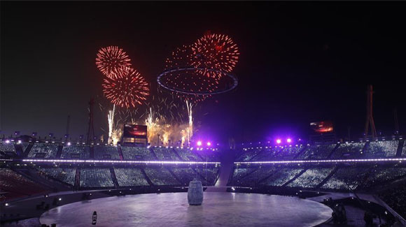 2月9日,朝韓兩國代表團在開幕式上舉“朝鮮半島旗”共同入場。當日,2018年平昌冬奧會開幕式在平昌奧林匹克體育場舉行。