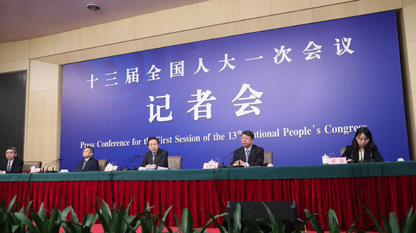 十三屆全國人大一次會議新聞中心于3月7日上午在梅地亞中心多功能廳舉行記者會,財政部副部長胡靜林回答記者提問。