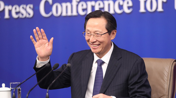 十三屆全國人大一次會議新聞中心于3月7日在梅地亞中心多功能廳舉行記者會,邀請農業部部長韓長賦,農業部新聞發言人、辦公廳主任潘顯政就“實施鄉村振興戰略推動農業轉型升級”的相關問題回答中外記者的提問。圖為農業部部長韓長賦向記者舉手示意。