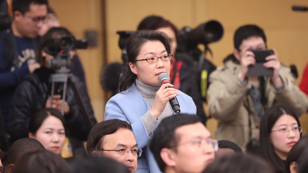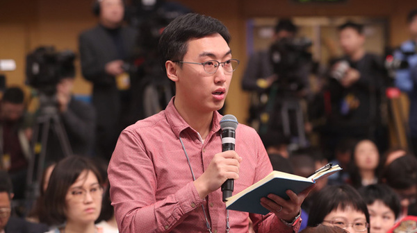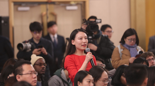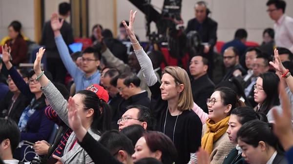 十三屆全國人大一次會議新聞中心于3月7日在梅地亞中心多功能廳舉行記者會,邀請農業部部長韓長賦,農業部新聞發言人、辦公廳主任潘顯政就“實施鄉村振興戰略推動農業轉型升級”的相關問題回答中外記者的提問。圖為現場記者舉手提問。