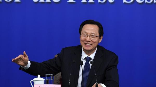 十三屆全國人大一次會議新聞中心于3月7日在梅地亞中心多功能廳舉行記者會,邀請農業部部長韓長賦,農業部新聞發言人、辦公廳主任潘顯政就“實施鄉村振興戰略推動農業轉型升級”的相關問題回答中外記者的提問。圖為韓長賦回答記者提問。