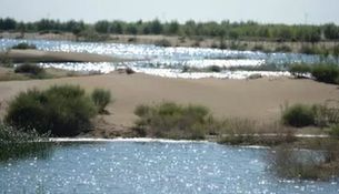 7月24日,引自黃河的凌水讓沙漠上充滿生機。據(jù)悉,中國第七大沙漠--庫布齊沙漠所處的杭錦旗境內(nèi),每年過境水量310億立方米,當?shù)匾荒耆忠坏臅r間都是凌汛期。
