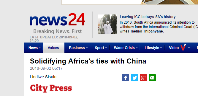 南非媒體點贊中非合作論壇:鞏固中非關系 創造合作新契機